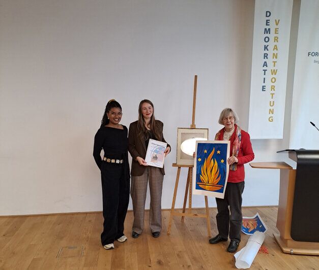 Mit der Verleihung des Robert-Blum-Preises an HateAid gGmbH wollen wir dies betonen. Clea Groß, Teamleiterin bei HateAid, und Desiree Mendonҫa, Referentin für Partnerschaften nahmen den Preis, der mit 1500 Euro dotiert ist, mit großer Freude entgegen. Zur Einführung in die Preisverleihung hatten sich Sprecher*innen aus dem BFGD und befreundeten Gemeinschaften unter dem Thema „Menschenwürde? Wir sind so frei!“ mit den unterschiedlichen historischen Ereignissen am 9. November im Hinblick auf ihre heutige Aktualität auseinandergesetzt.