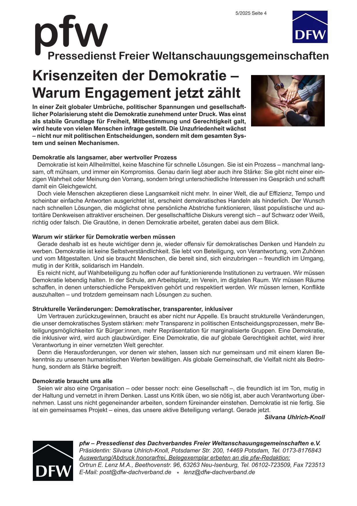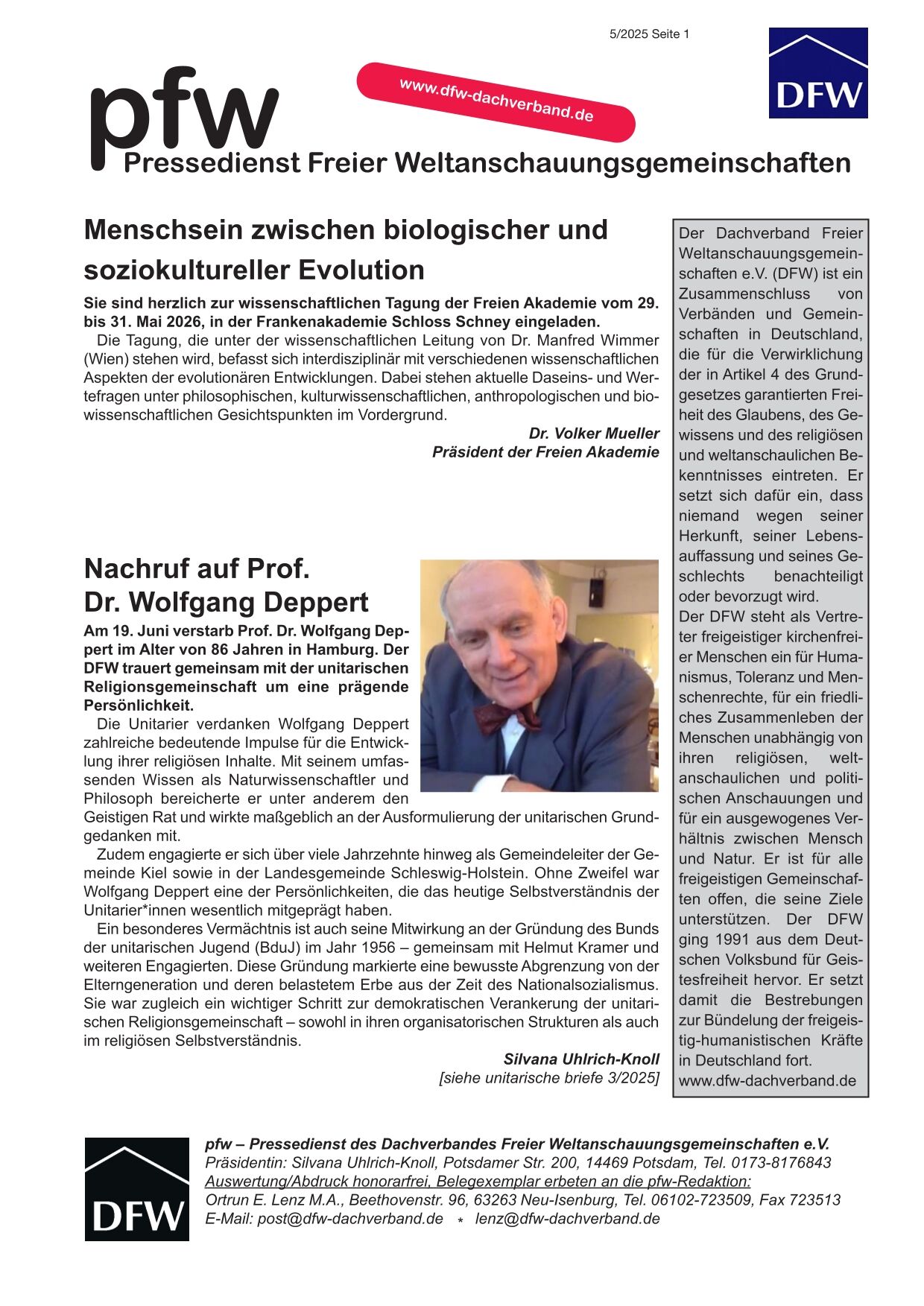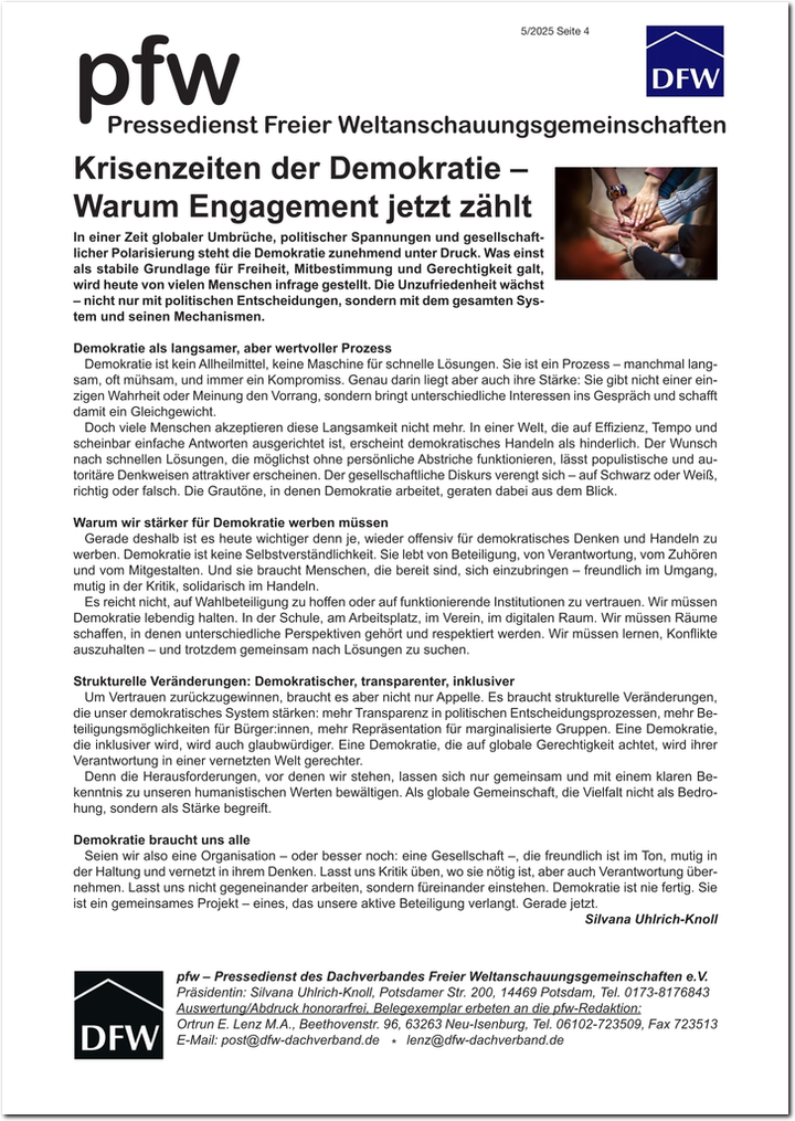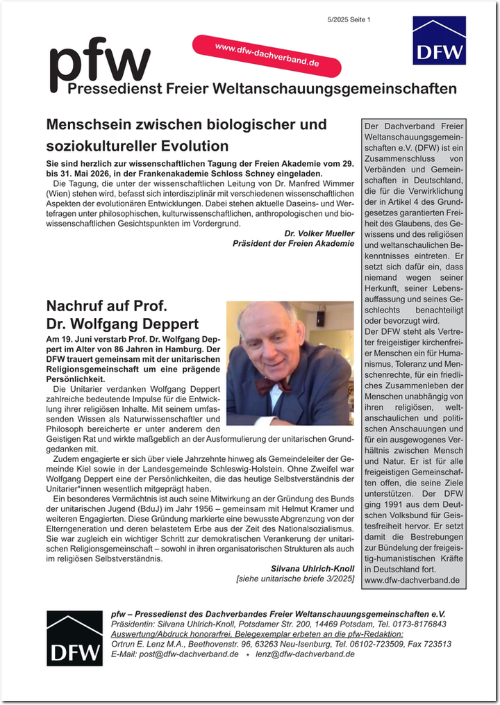 pfw - der Pressedienst Freier Weltanschauungsgemeinschaften