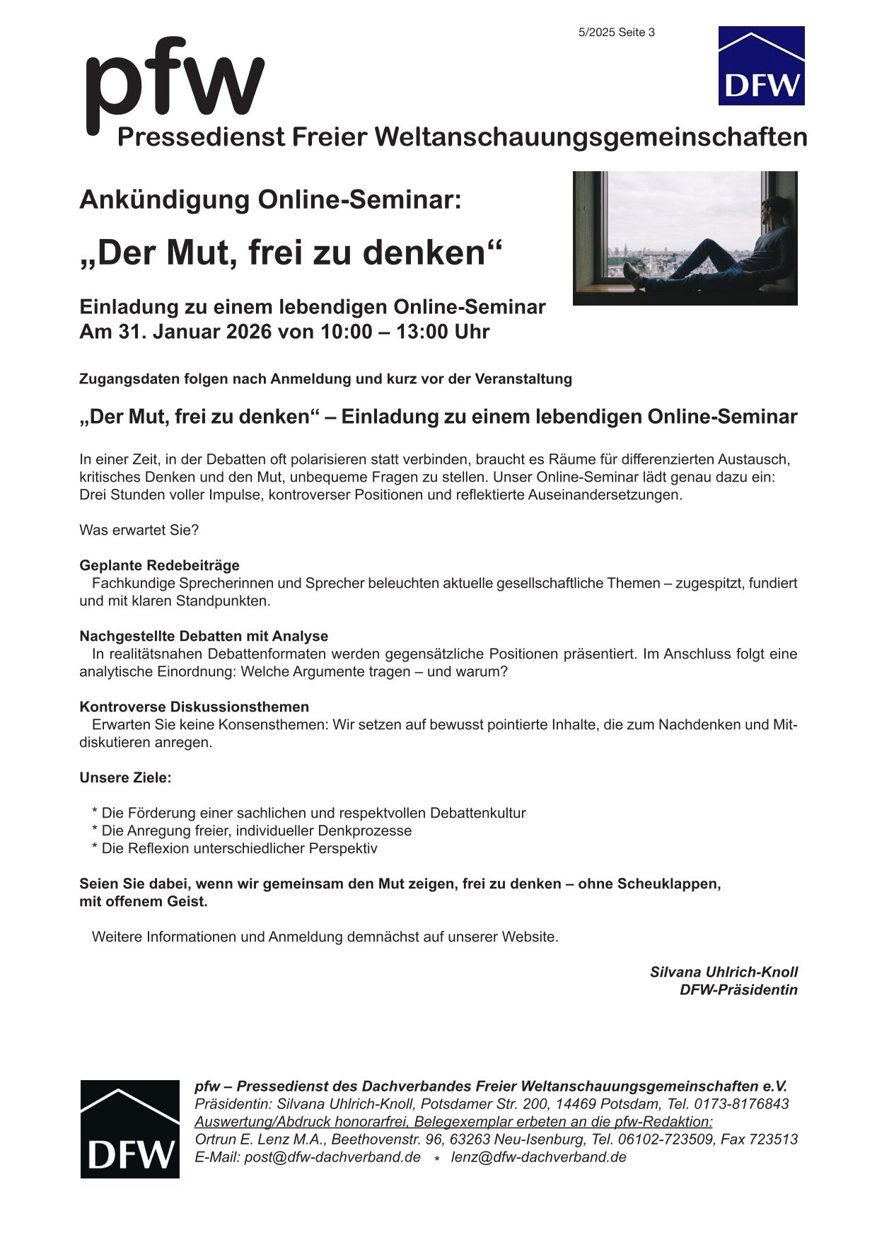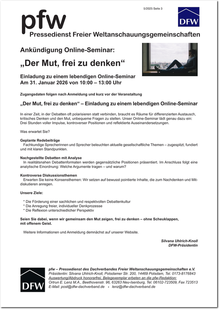 - Ankündigung Online-Seminar: „Der Mut, frei zu denken“
