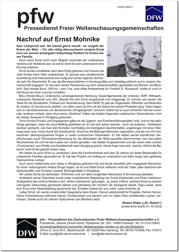 - Nachruf auf Ernst Mohnike