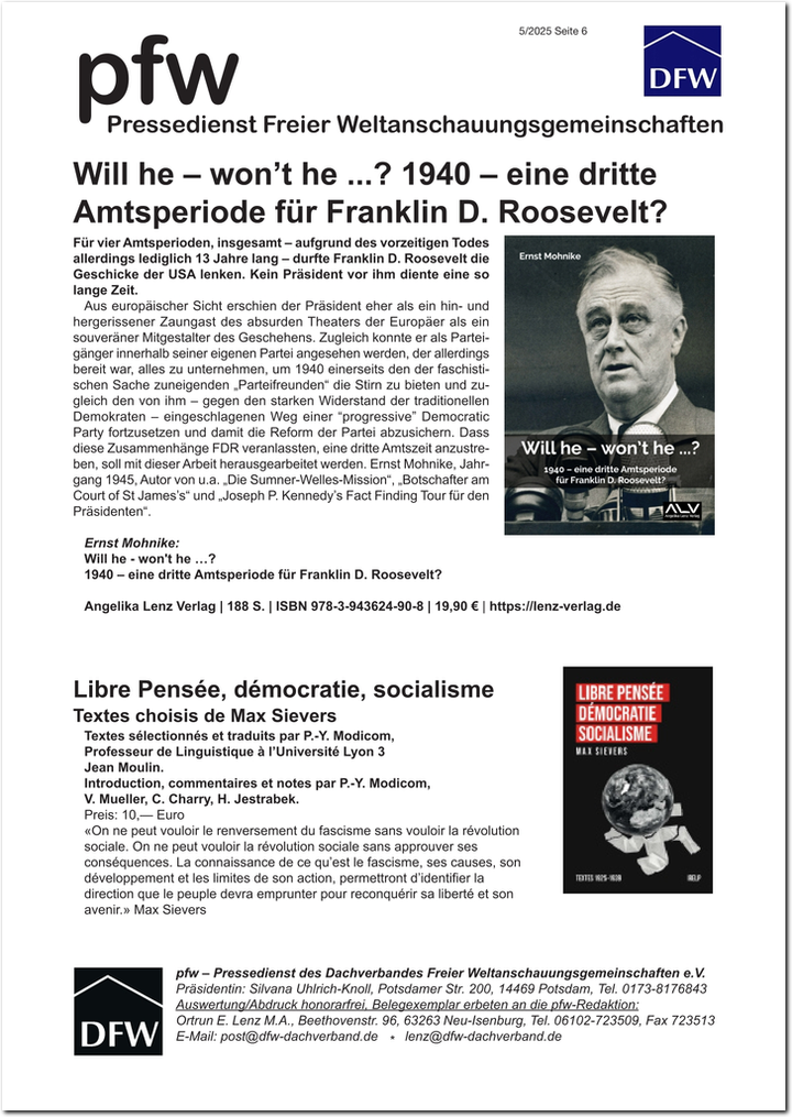 - Neuerscheinung – Max Sievers: Was will der Deutsche Freidenker-Verband?