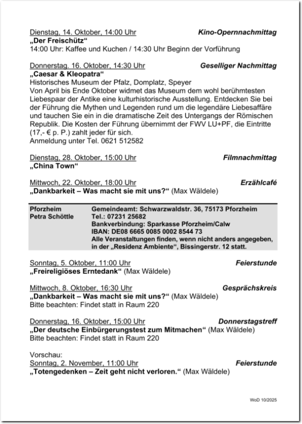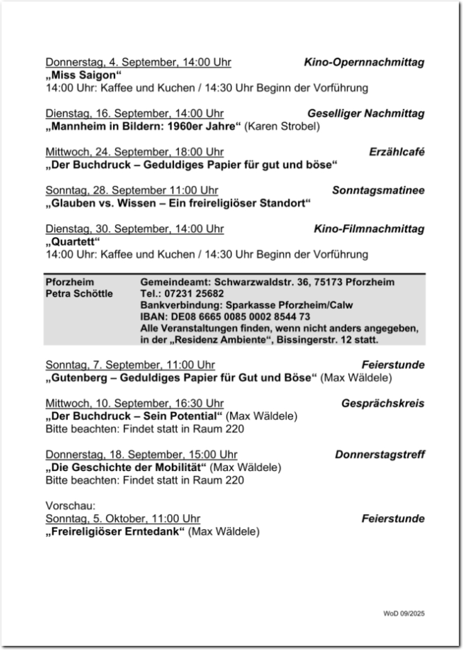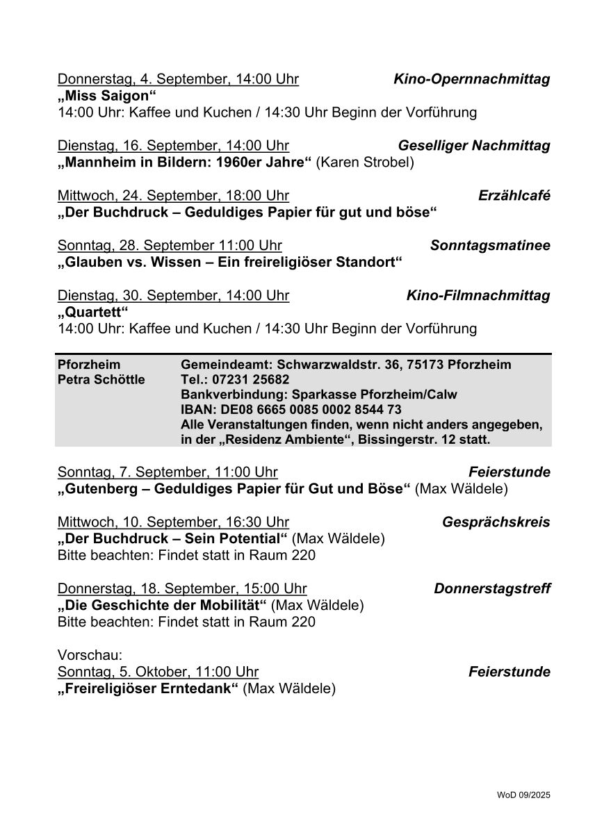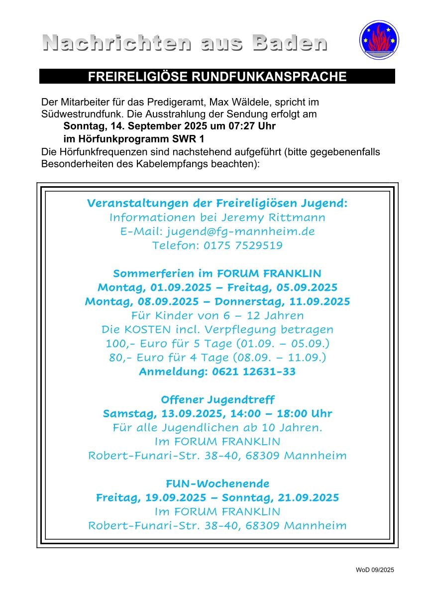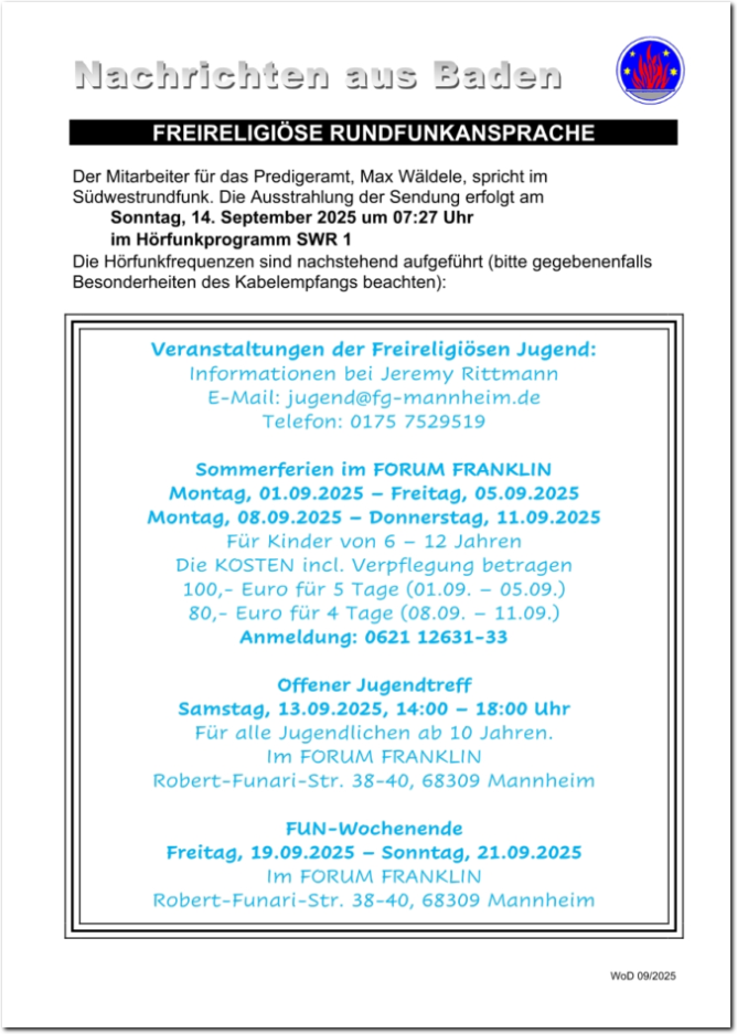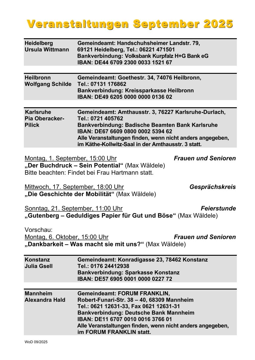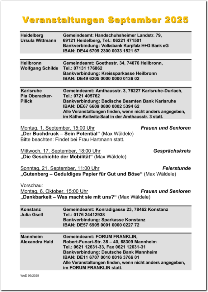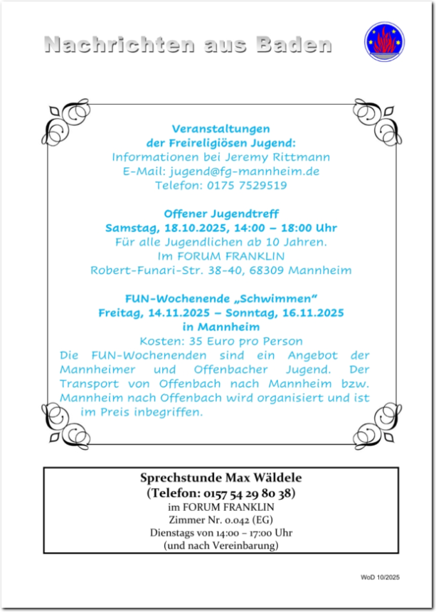 Terminvorschau der Freireligiösen Landesgemeinde Baden
