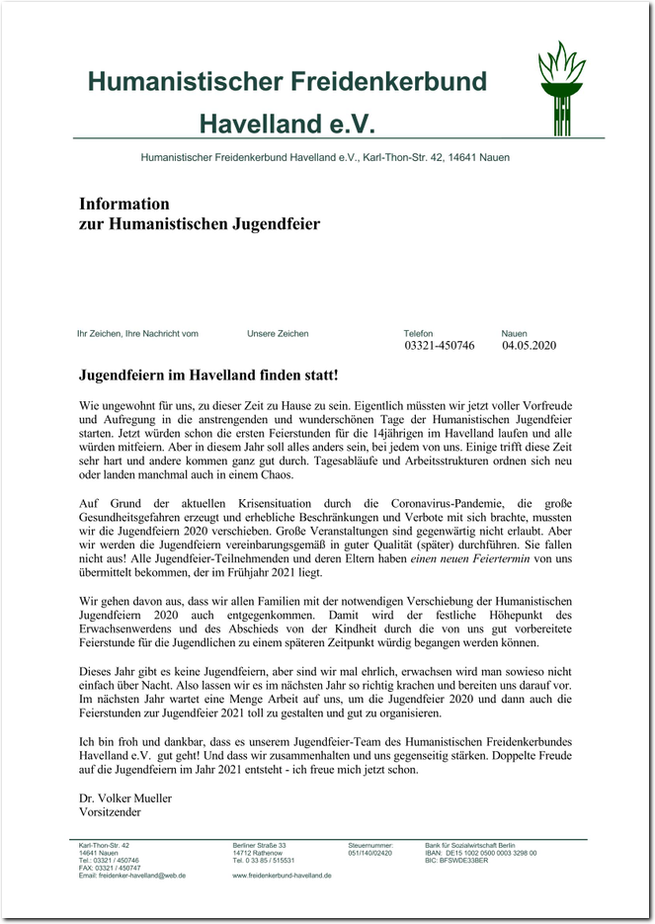 Vorsitzender des Humanistischen Freidenkerbundes Havelland e.V.