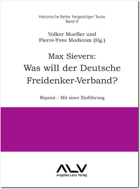 1930 wurde der Freidenkerverein in Deutscher Freidenker-Verband (DFV) umbenannt, der sich in der Weimarer Republik zu einer großen Kulturbewegung und Weltanschauungsgemeinschaft mit über 600.000 Mitgliedern entwickelte. 1931 erschien die Schrift von Max Sievers „Was will der Freidenker-Verband?“, in der er Programm und Aufgaben des DFW populär beschrieb. Diese historisch bedeutsame Schrift wird hier als 9. Band der Historischen Reihe freigeistiger Texte des ALV wiedergegeben. Mit einem Vorwort von Volker Mueller und einer Einleitung von Pierre-Yves Modicom.