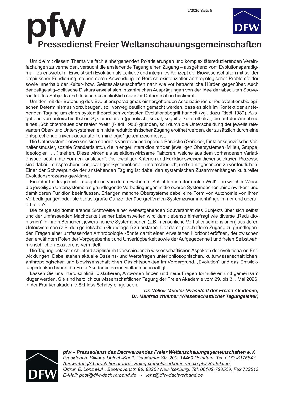pfw - der Pressedienst Freier Weltanschauungsgemeinschaften