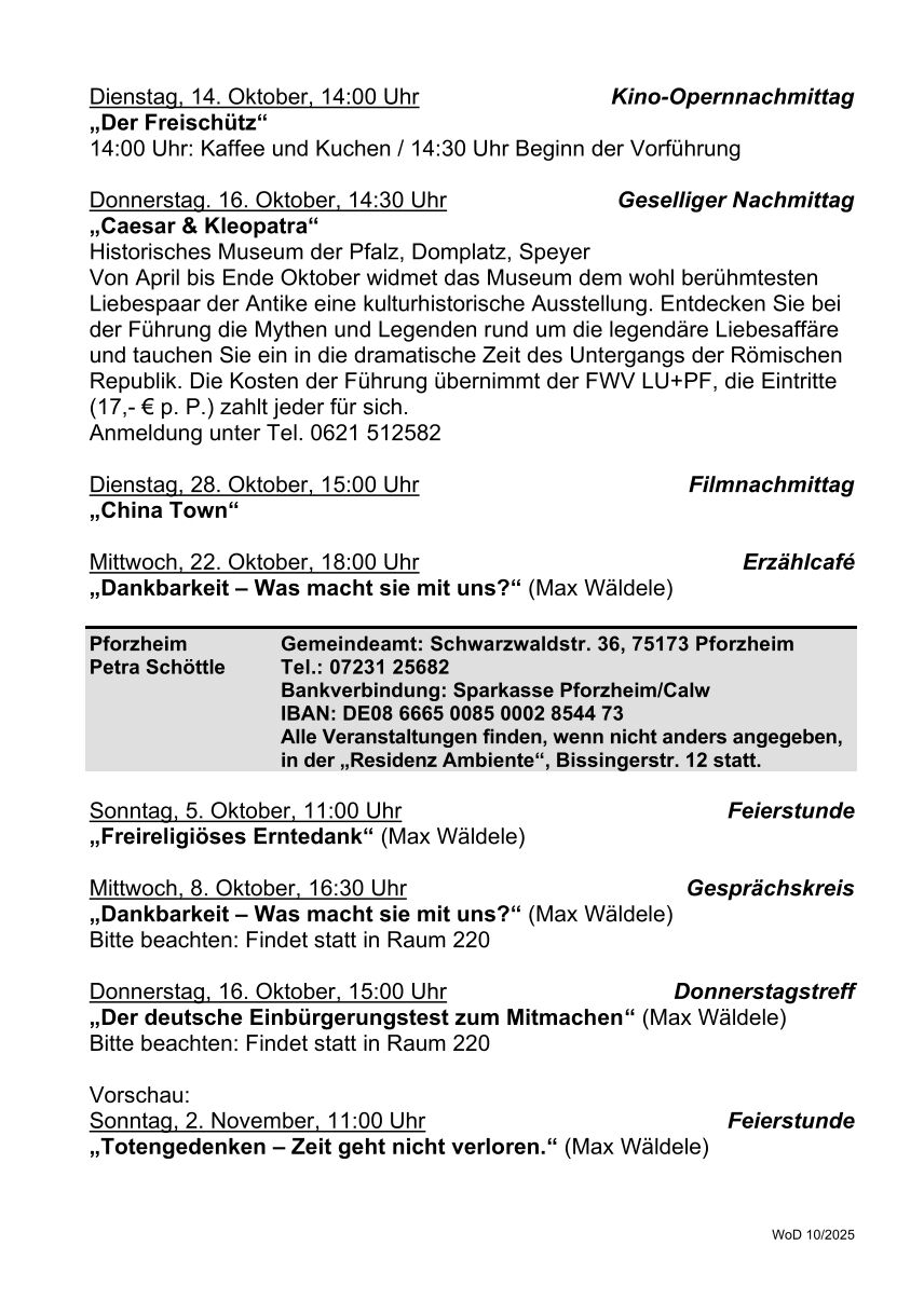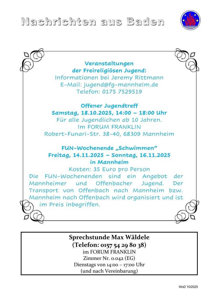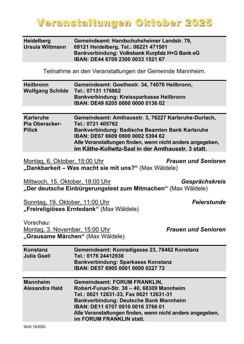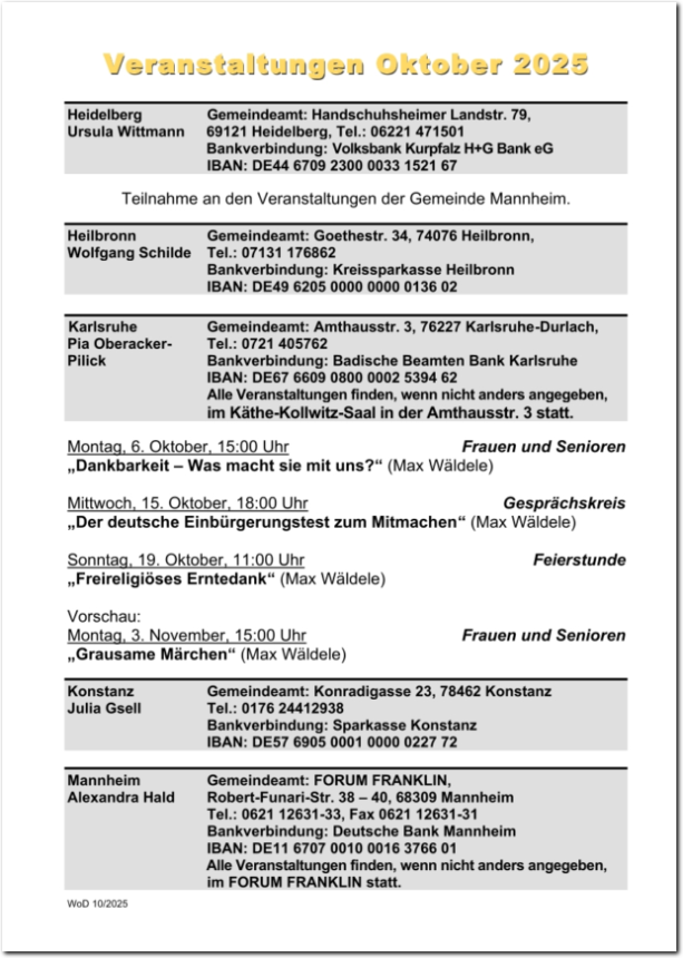 Terminvorschau der Freireligiösen Landesgemeinde Baden