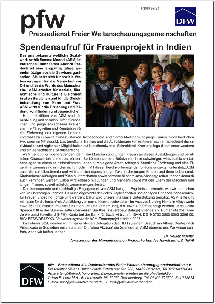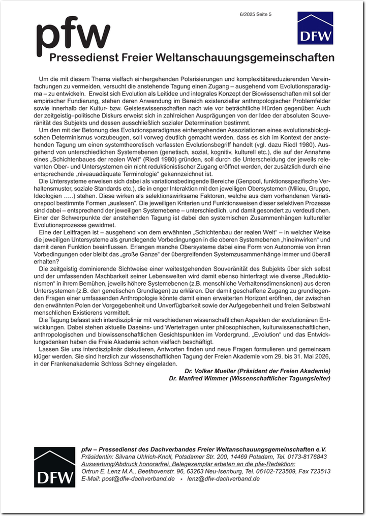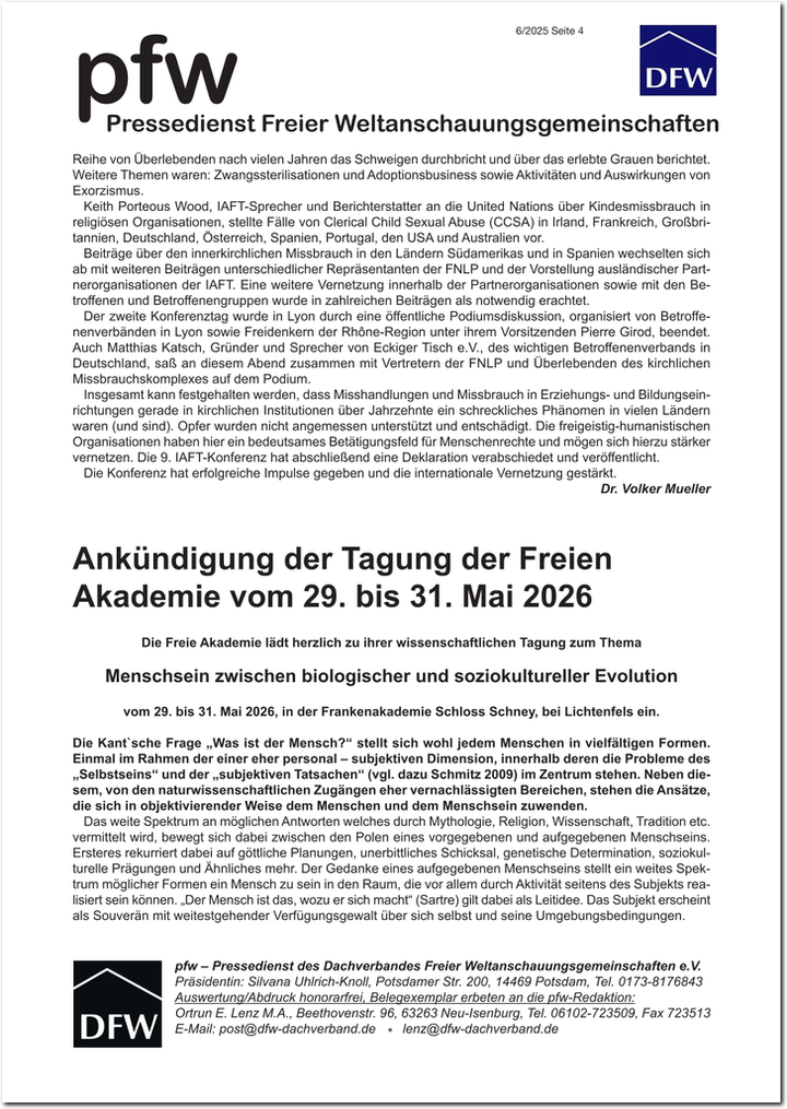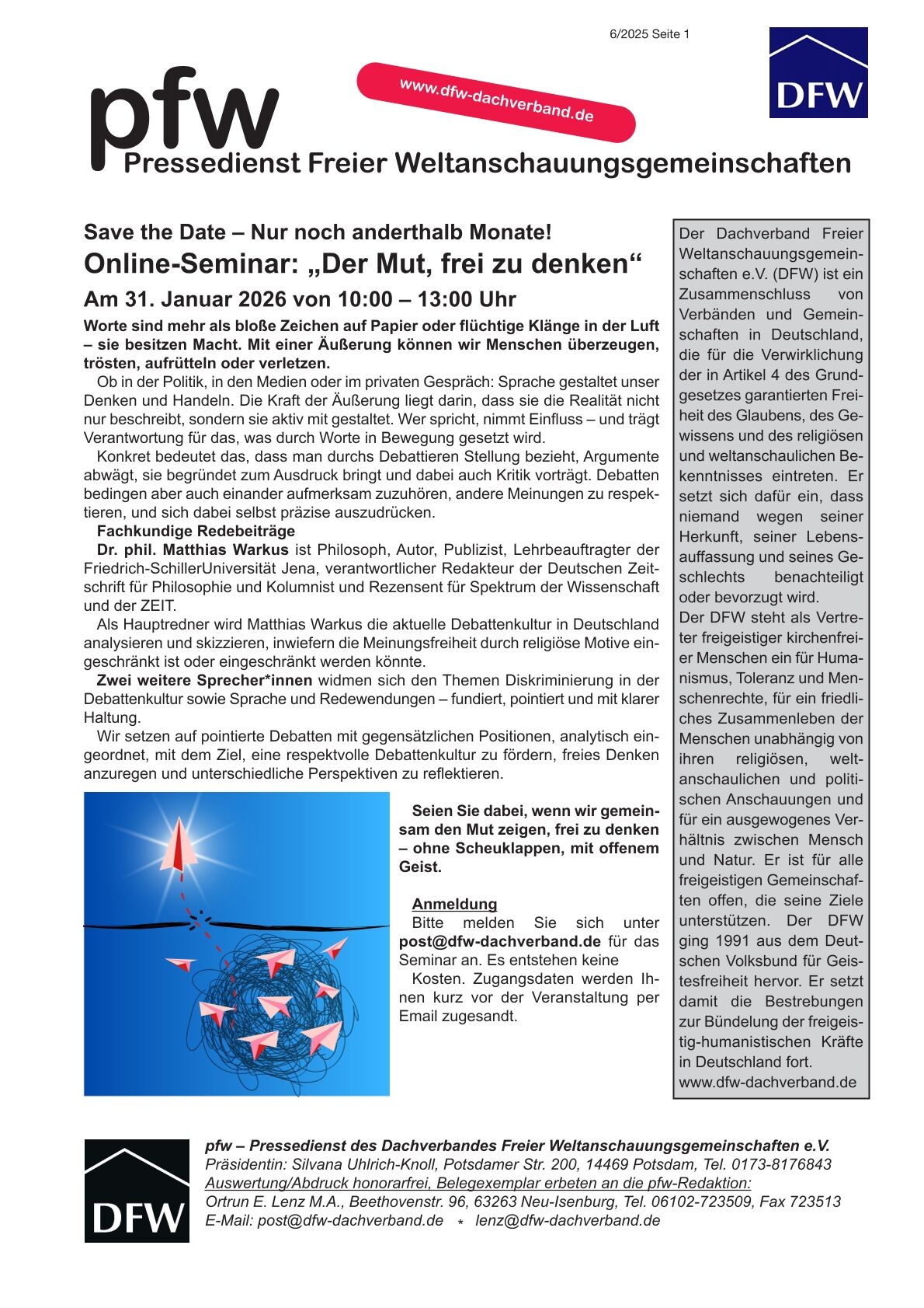 pfw - der Pressedienst Freier Weltanschauungsgemeinschaften