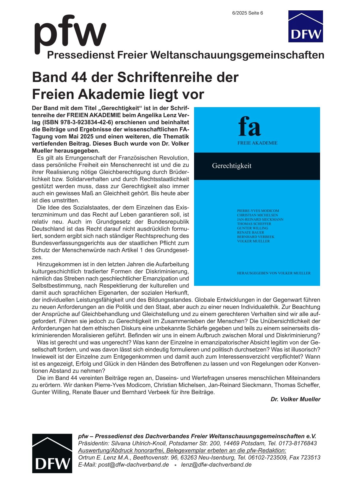 - Band 44 der Schriftenreihe der Freien Akademie liegt vor