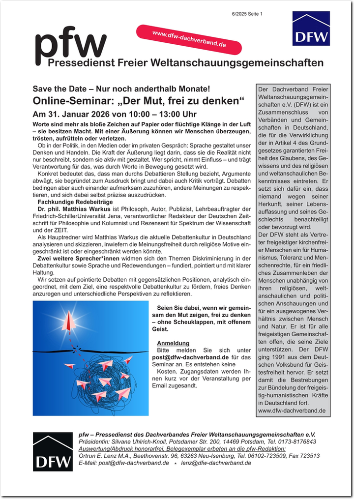 - Ankündigung Online-Seminar: „Der Mut, frei zu denken“